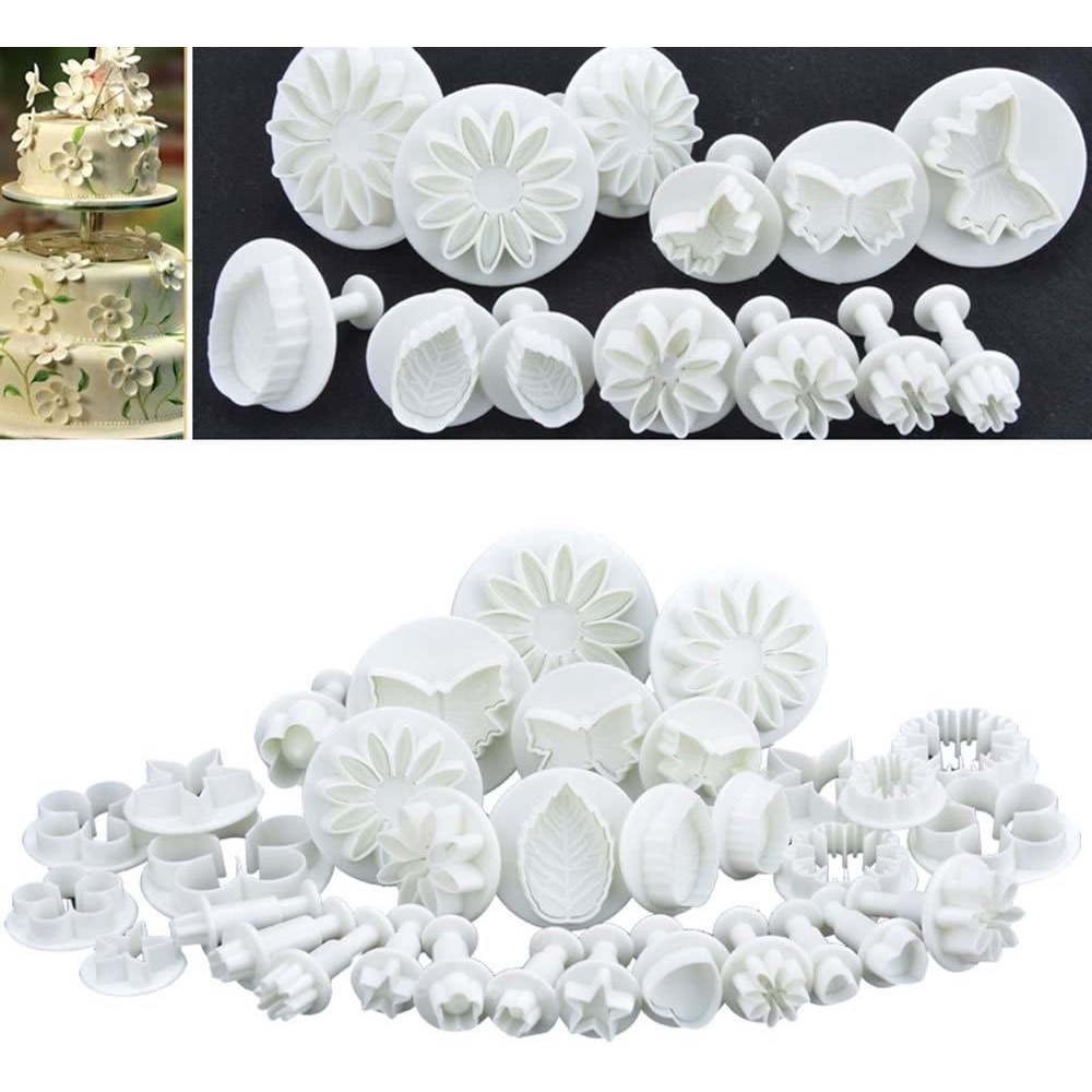 Kit Jogo Com 33 Peças Ejetor e Cortador Para Confeitaria Massa Pasta Americana Fondant e Artesanato Em Biscuit