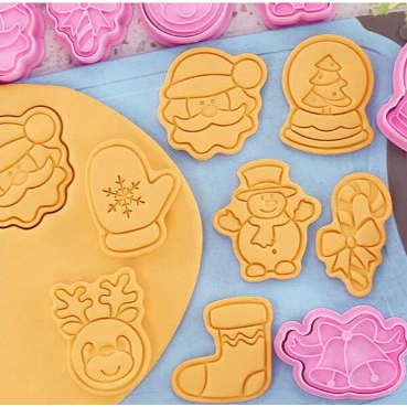 Kit Marcador e cortador de Massa Natal Biscuit 8 peças -C6041-8