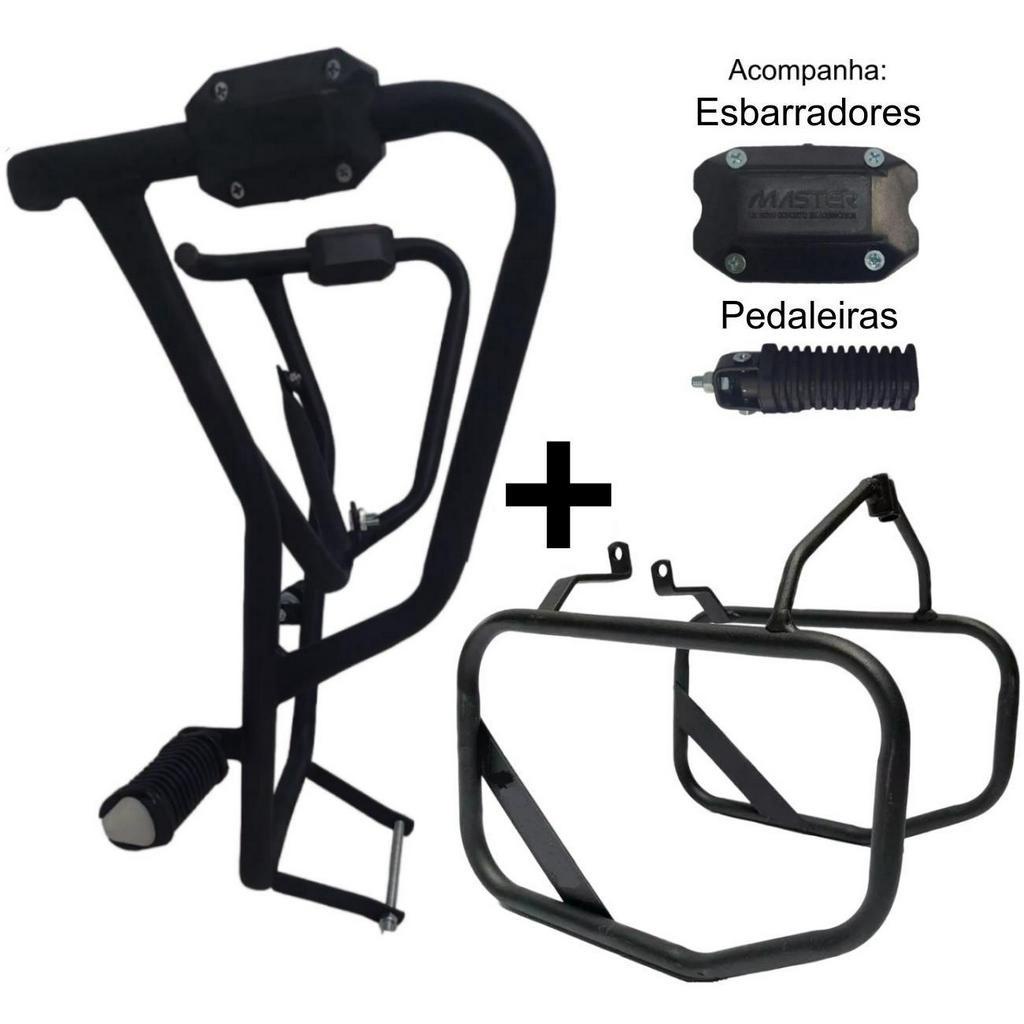 Kit Para CROSSER 150 XTZ de 2014 até 2024 Protetor Carenagem Tanque Motor Mata Cachorro + Afastador Alforges Traseiro Lateral