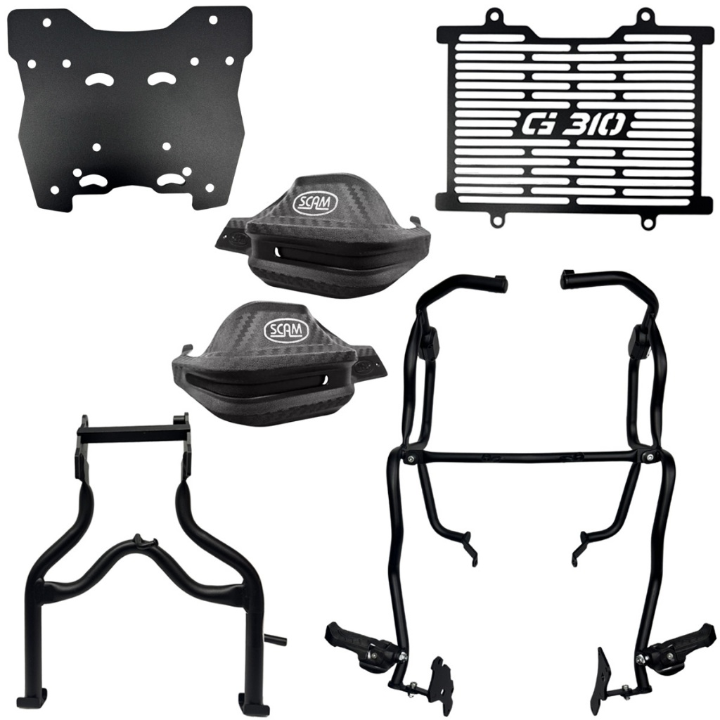 Kit Protetores Bmw G310 Gs310 Protetor Motor Carenagem Radiador Suporte Baú Bauleto Chapa Bagageiro Cavalete Central G 310 2018+ Scam Vamo