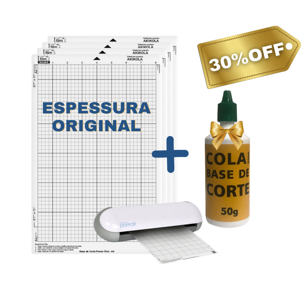 Kit com 1 Base A4 + 1 Base 30x30 + 1 Tubo de Cola + Para Silhouette Portrait, Portrait 2, 3 e 4 - Cameo, Cameo 2 e 3