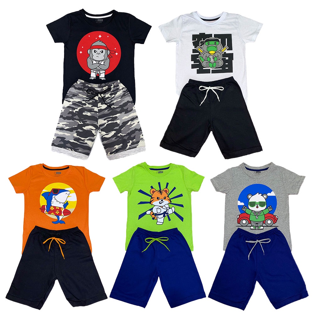 Kit 1 Conjunto De Roupa Infantil Camiseta + Shorts Menino Masculino - Tamanho 1 ao 8 Anos ( Estampas Patch à Escolher)