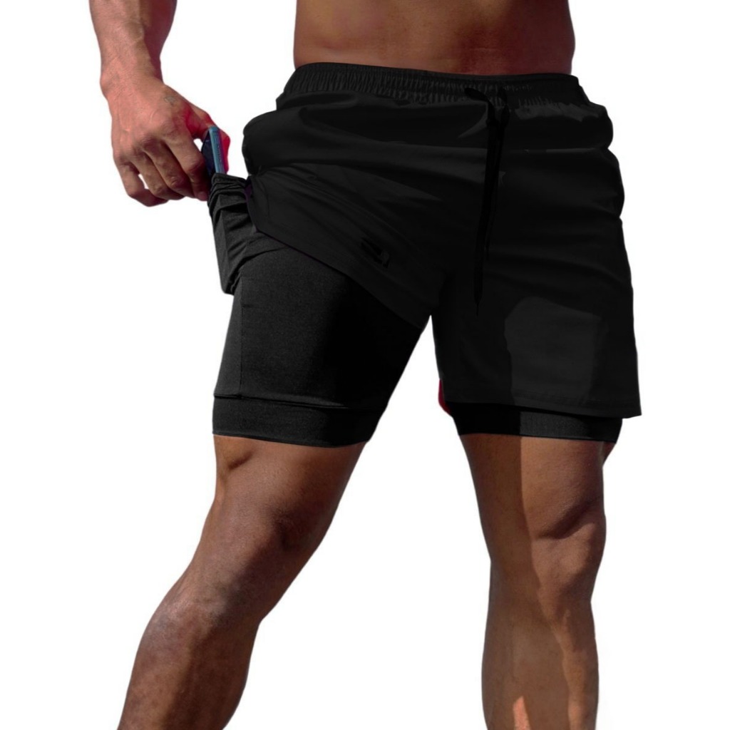 Bermuda Shorts 2 em 1 Com Shorts Interno Térmico Para Treinar Com Bolso Interno Porta Celular e Carteira