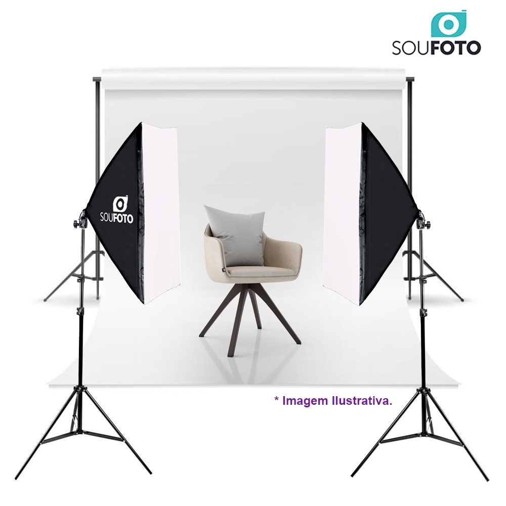 Softbox Kit de Iluminação Sou Foto Tripé de Luz Profissional para Estúdio de Ensaio Fotográfico ou Produtos e Gravação de Vídeos Lives Instragamável Youtuber Tiktoker Composto por 2x Softboxes 50x70 Para Uma Lâmpada E-27 e 2x Tripés de Iluminação 2 Metros