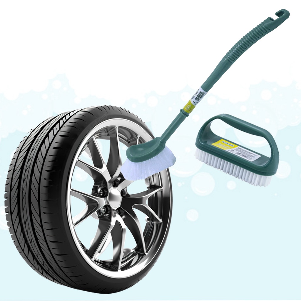 kit 2 Escovas para Caixa de Rodas Acabamento Automotivo Multiuso. Uma Escova Cabo Longo Limpa Cantos 40cm e 1 Escova de Cerdas Duras para Acabamento