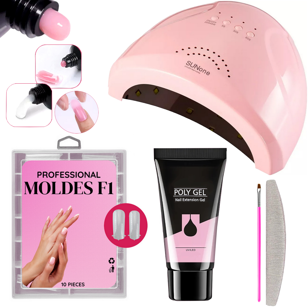 Kit Polygel Molde F1 Mini Cabine Unha Poligel Pincel Presilhas Lixa Alongamento de Unhas