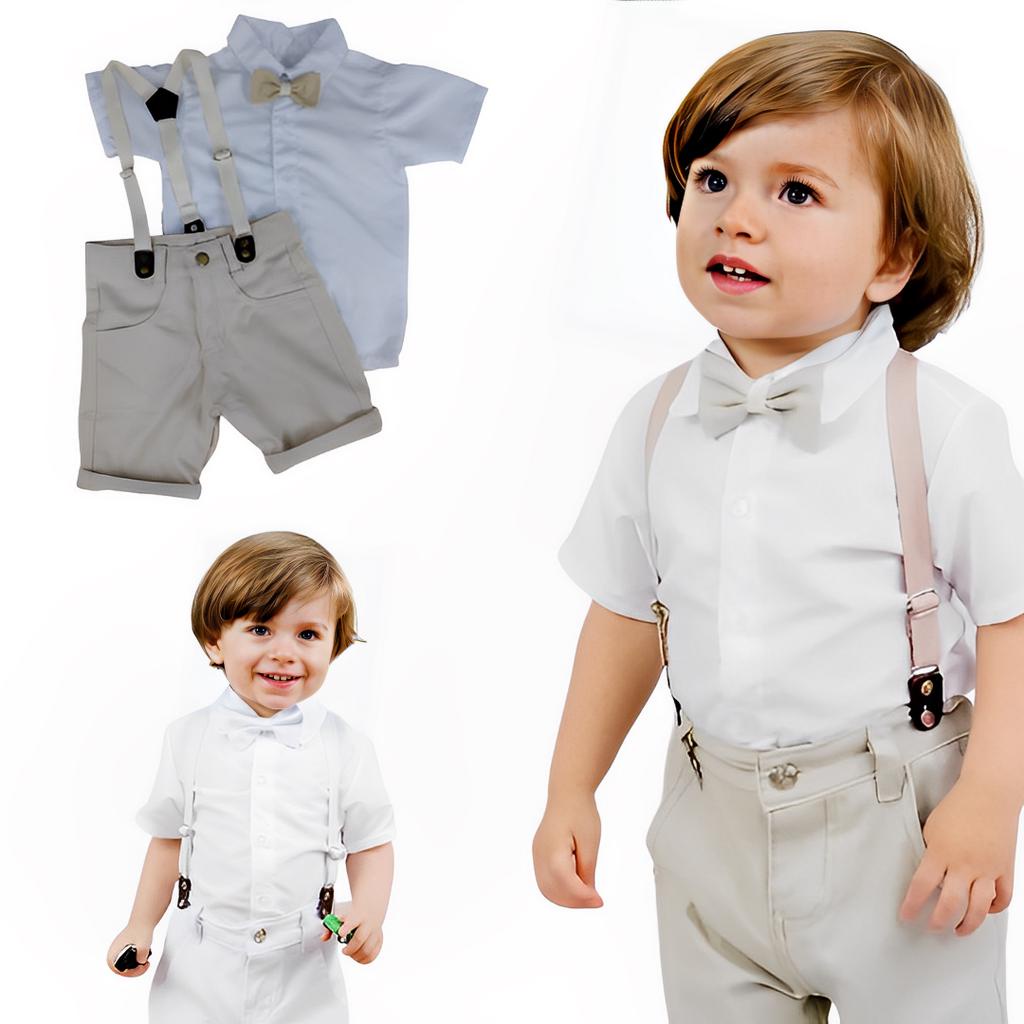 CONJUNTO BATIZADO Menino Infantil Roupa De Pajem Social, casamento, batismo pajem Camisa Gravata Bermuda e Suspensório