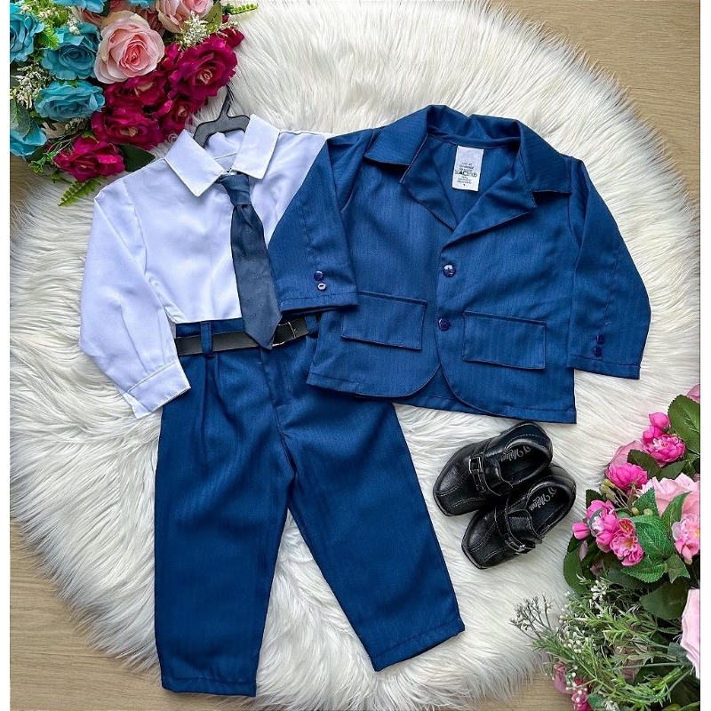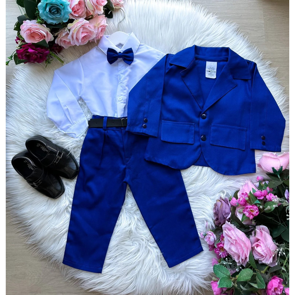 Conjunto Social Para Menino Infantil Miss Cherry Casamento, Batizado Terno - Blaizer Azul Royal