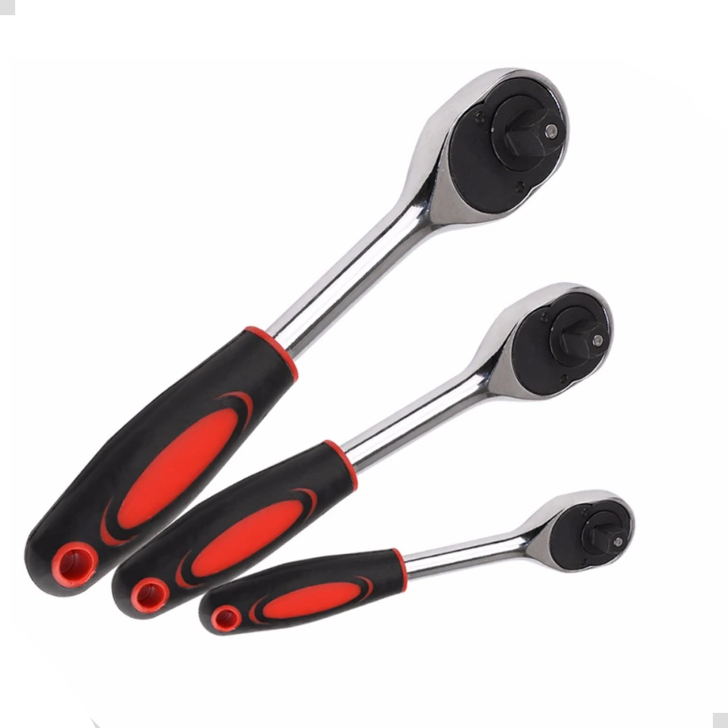 Kit C/3 Chaves Catraca Para Soquete Reversível 1/2 3/8 E 1/4 Polegadas