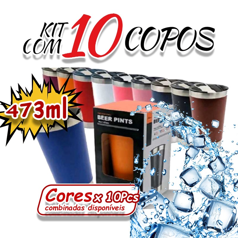 kit com 10 Copos Termico Stanley com tampa e abridor de garrafa 473 ml Cerveja ou Café Inox