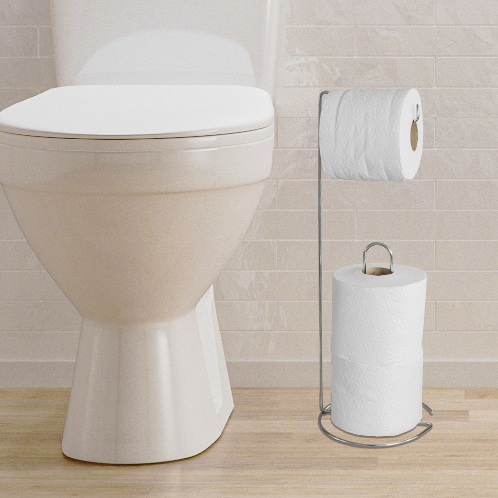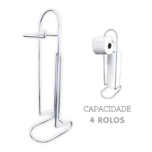 Porta Papel Higiênico P/ Chão Papeleiro Suporte 4 Rolos Cromado Luxo Banheiro