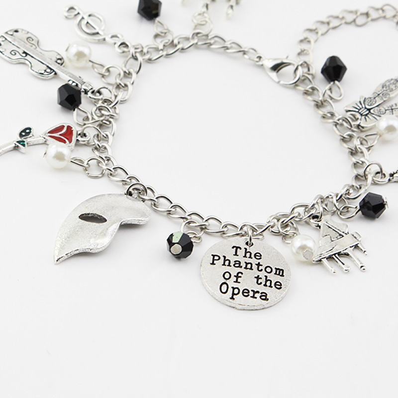 Pulseira Do Filme the Phantom of Opera Para Mulheres Máscara Violino Pingente Joias Pulseiras De Liga De Zinco Meninas