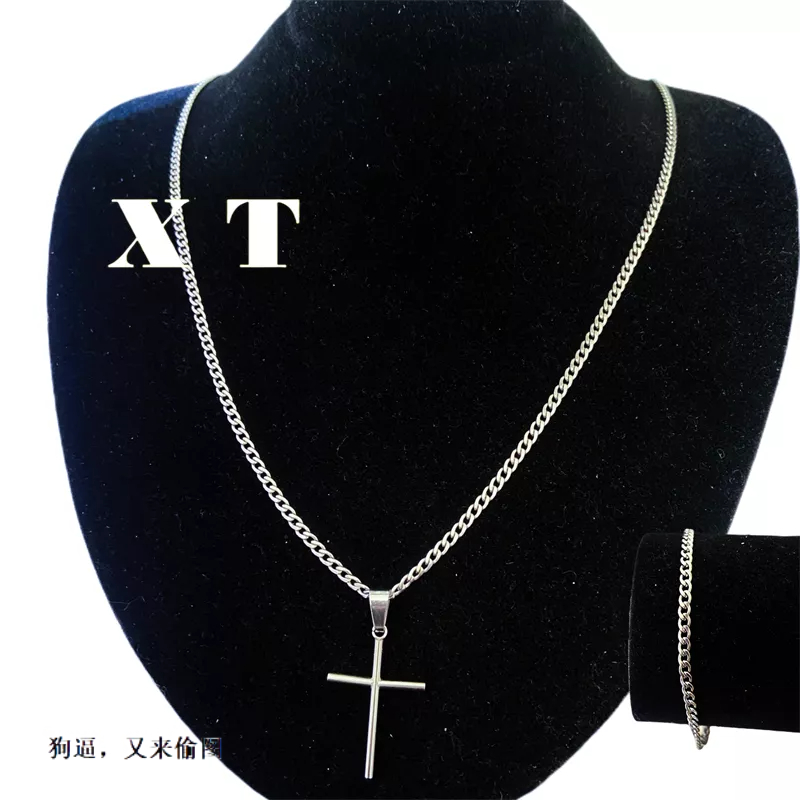 Kit Corrente+Pulseira cordão fina masculina 60cm com Pingente de Cruz Aço inoxidável 316L