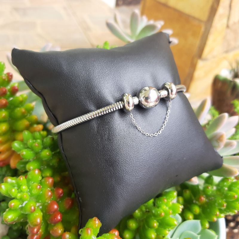 Pulseira Berloqueira + Trava de segurança pega ladrão aço inoxidável 316L semelhante a life pandora vivara tamanho 17 18 19 20 21 23 e 24 cm