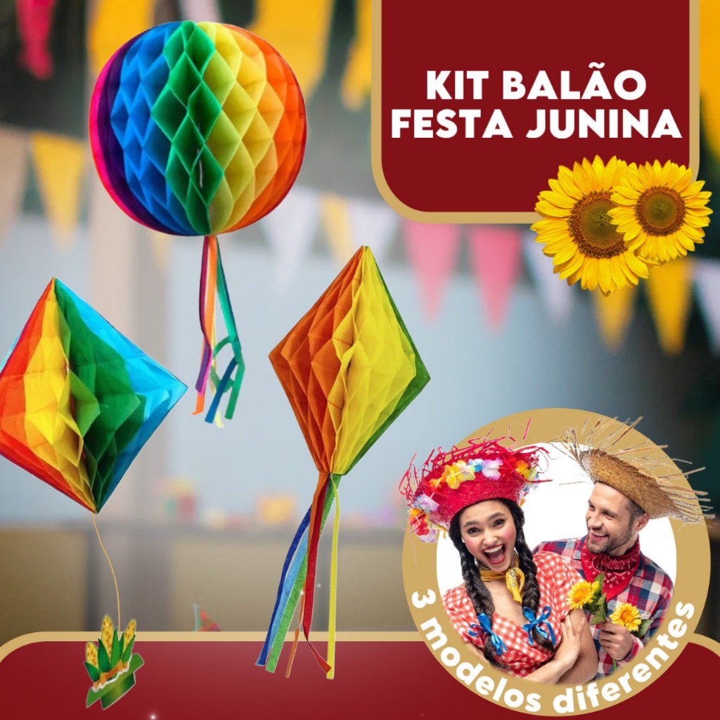 Kit 3 Enfeites Balão Festa Junina Decoração De Papel Colorido Bola Para Festa Julina