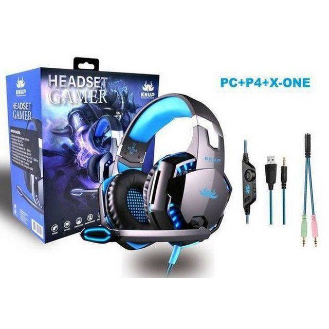 Headset fone Gamer Surround LED com Microfone Retrátil Cabo P3 + Adaptador p/ P2 Knup