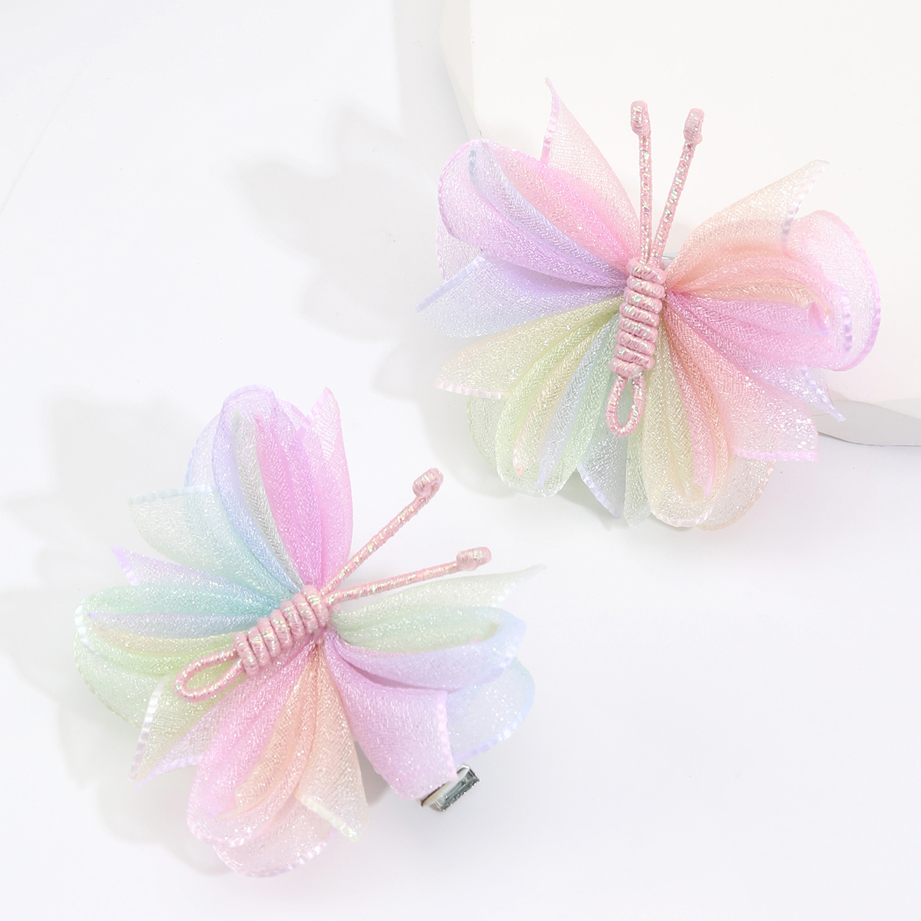 2pcs Cute Cartoon Colorful Mesh Butterfly Clipes De Cabelo Decorativos Acessórios Presente De Férias Para Meninas Bebês