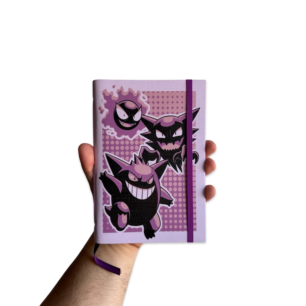 Sketchbook Caderno Desenho Pokemon Gengar Gastly Haunter Com Elástico e Marca Página Plastificado