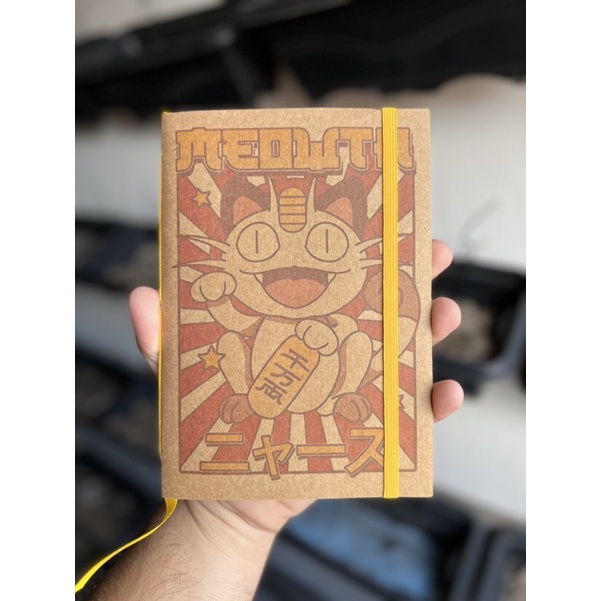 Sketchbook Caderno Meowth Pokémon Equipe Rocket com Elástico e Marca Página Aquarela