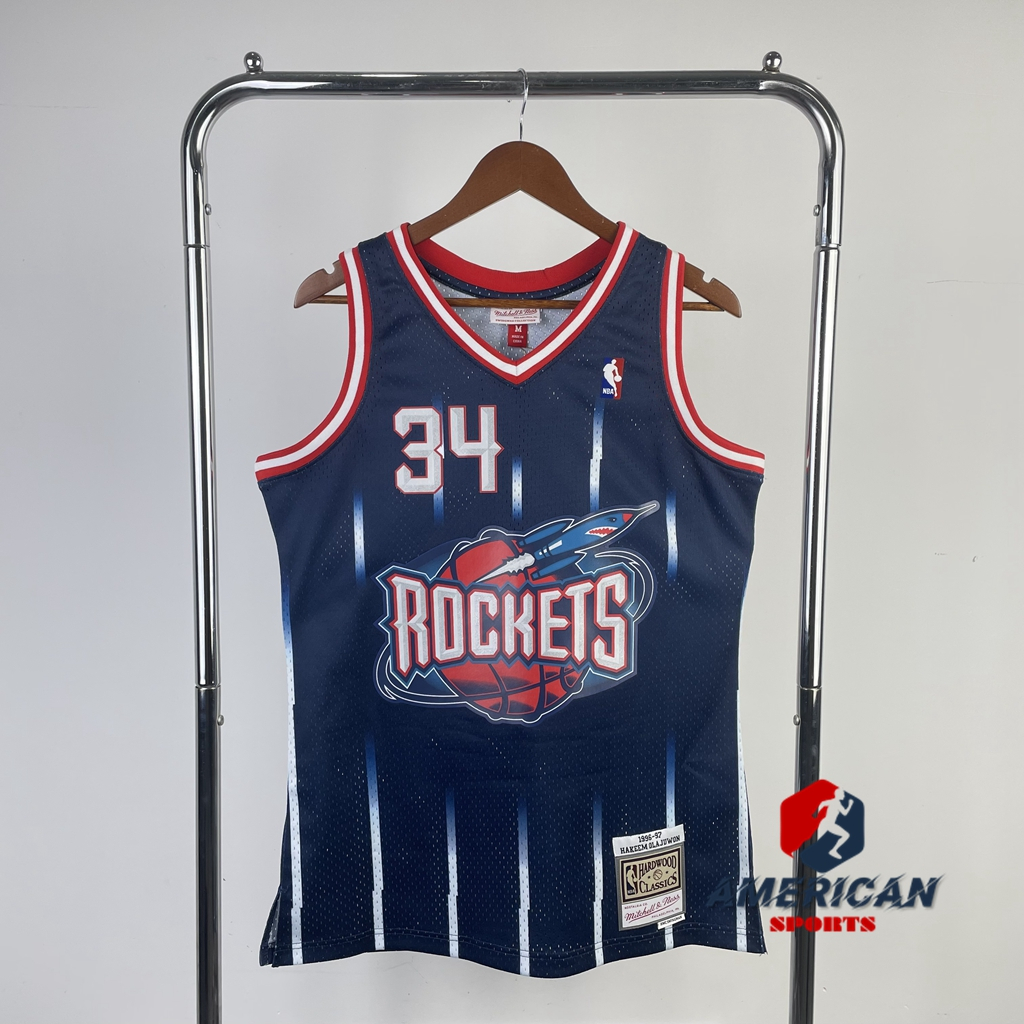 Homens Camisa 2023nba Houston Rockets Hakeem Olajuwon Mitchell & Ness Blue 1996/97 Hardwood Clássicos Basquetebol Jersey