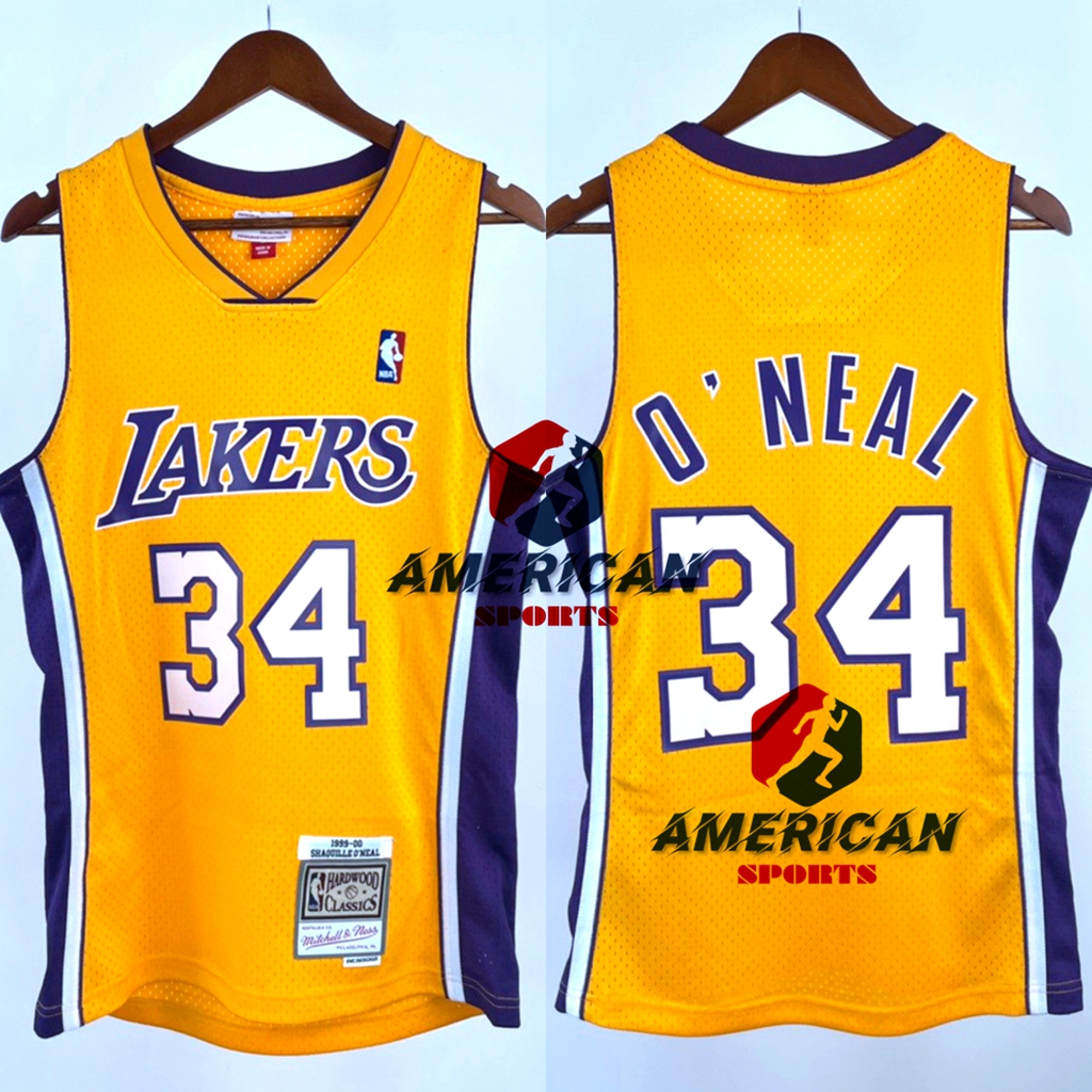 (8 Estilos) Homens CamisaA Los Angeles Lakers 34 O NEAL Camiseta 2023NBA Mitchell & Ness De Basquetebol Yellow Jersey