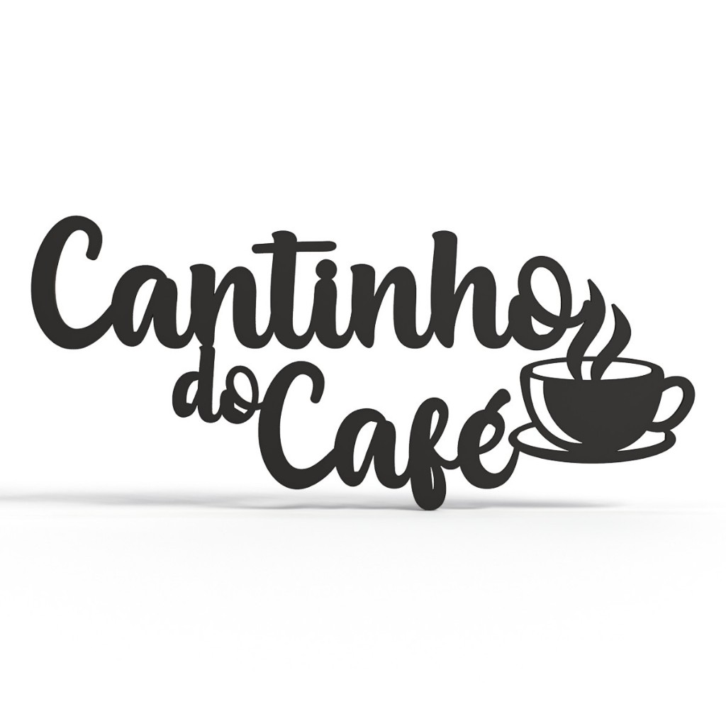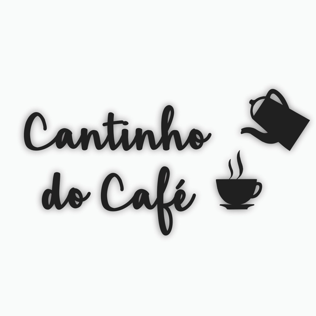 Palavra Decorativa Cantinho do Café Placa de Parede Decoração Com Apliques de Bule e Xicara Cor Preta 24x10Cm + Fita Dupla Face Brinde