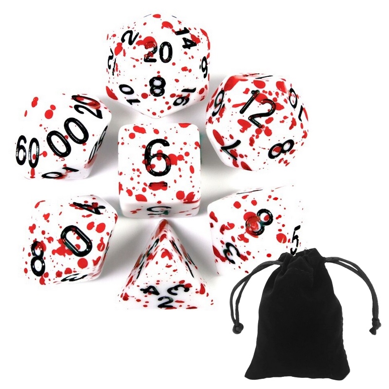 Kit 7 Dados Rpg De Mesa Sangue D&d D4 D6 D8 D10 D10% D12 D20