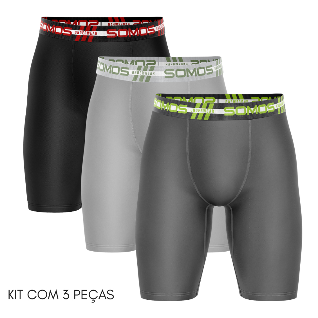 Kit 3 Cuecas Boxer Ciclista Long Leg de Microfibra com Forro de Algodão