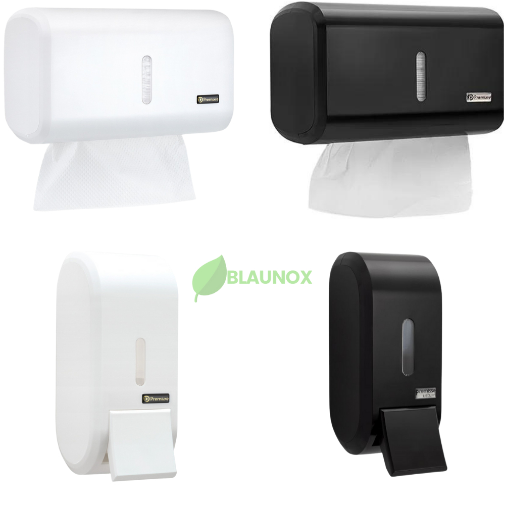 Kit Saboneteira Alcool Gel Dispenser Papel Toalha Compacta Urban PRETO ou BRANCO PREMISSE