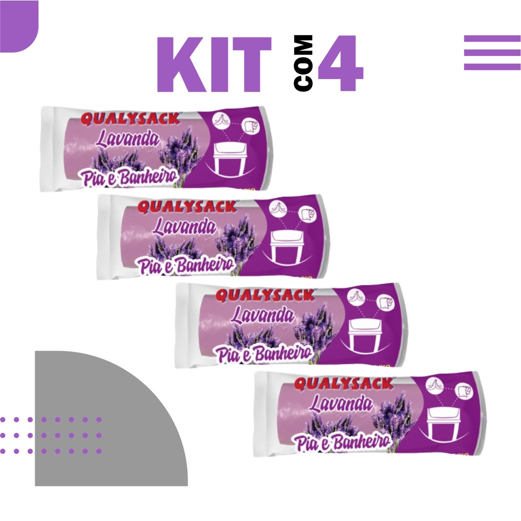 Kit 4 Saco de Lixo Perfumado 200un Pia Banheiro Cozinha Anti Odores Lavanda Saco de Lixo Rolo 4x50un