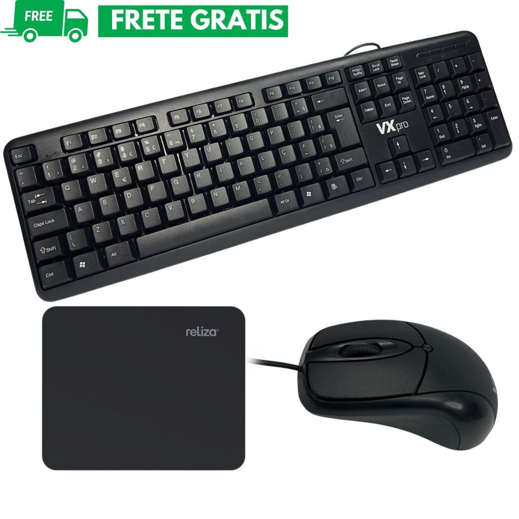 Kit Teclado mouse mousepad office com fio usb pc notebook computador simples basico barato garantia