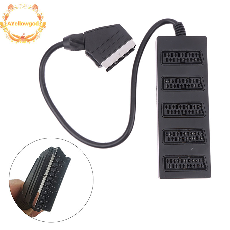 AYellowgod 21Pin Scart 5 Way Splitter 21p Macho Para 5 Fêmeas Conector Adaptador 5 Road Um Divide Em Cinco Cabos Line .