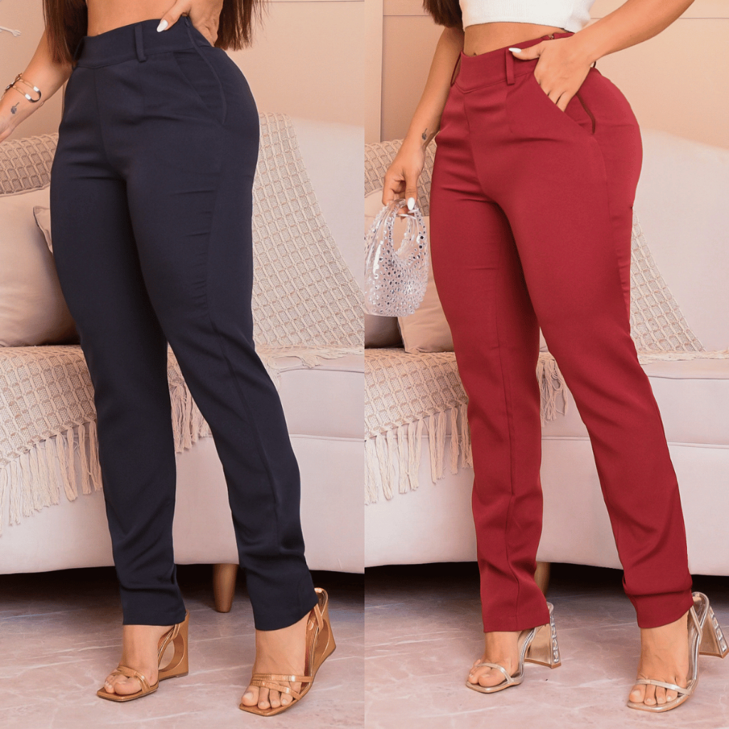 Calça Social Feminina Estilo Alfaiataria Ajuste Skinny Cintura Alta