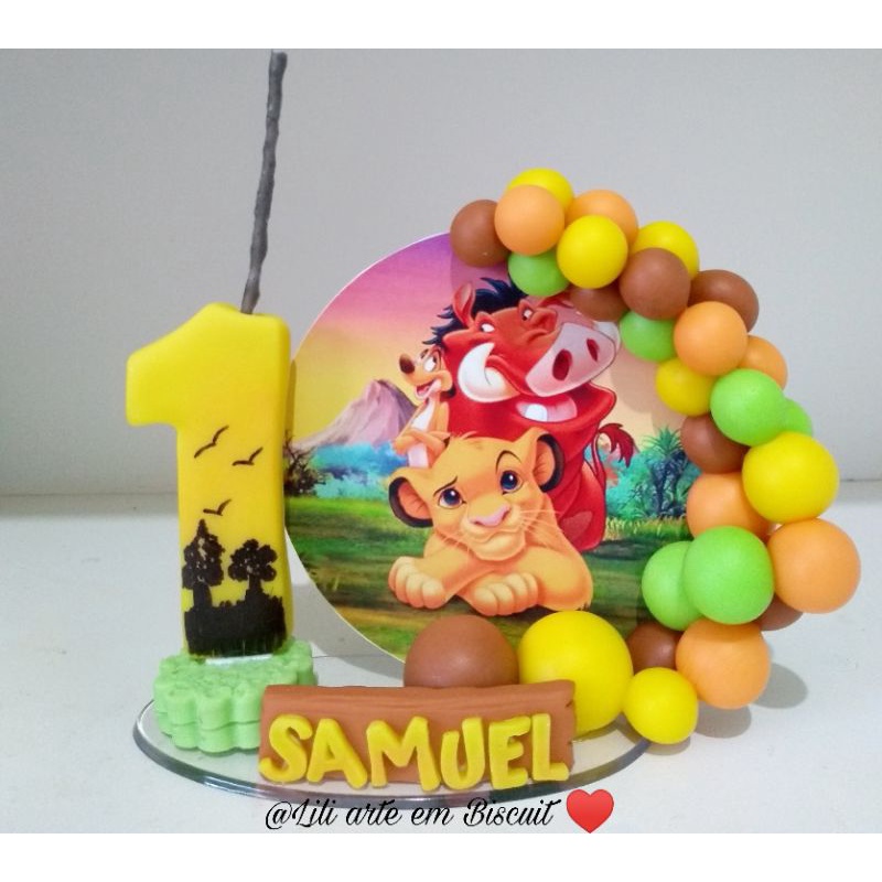 vela de aniversário rei leão topo de bolo cenário biscuit 1,23