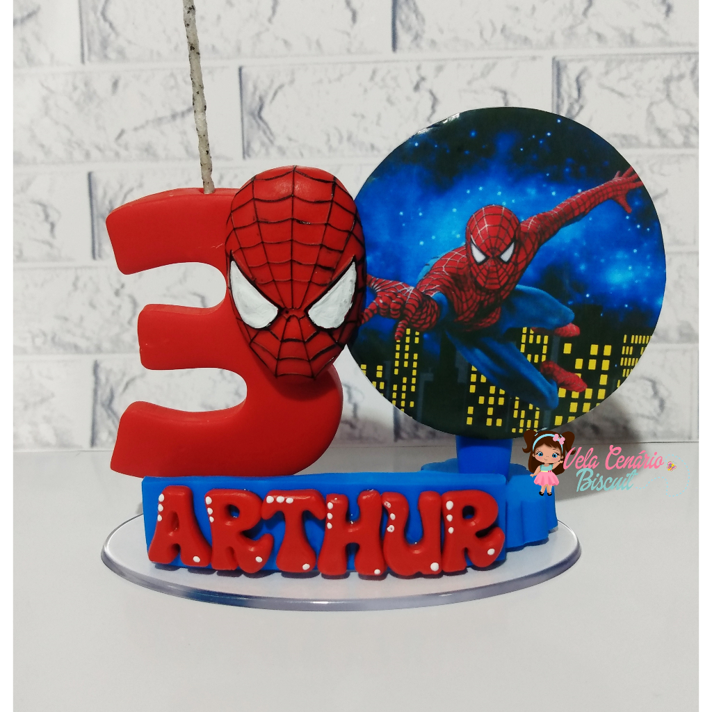 Vela de aniversário homem aranha Cenário biscuit 1, 2 , 3 ,4 , 5 , 6 , 7 , 8 ,9 topo de bolo Cenário