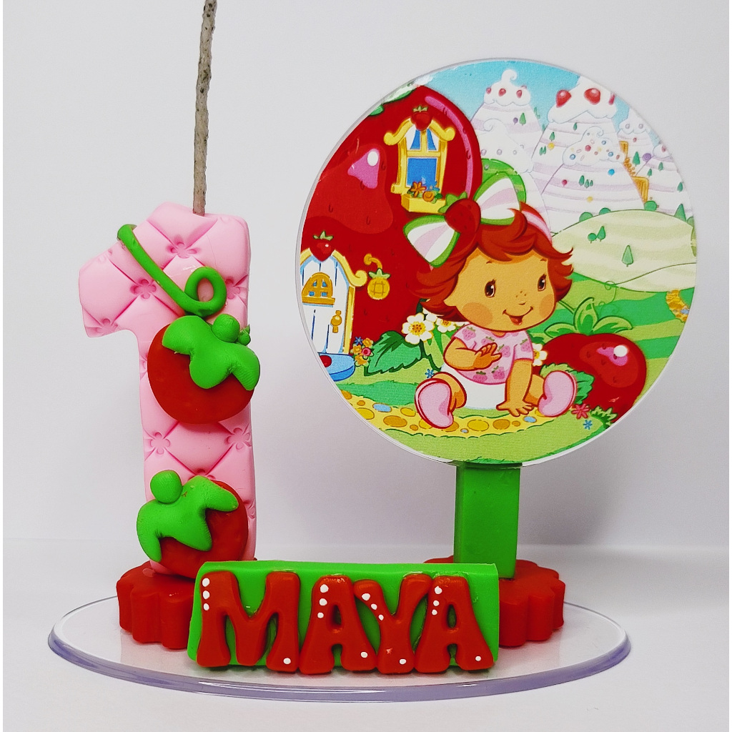 Vela de aniversário MORANGUINHO BABY Cenário biscuit 1, 2, 3, 4 , 5 , 6 7 8 9 anos topo de bolo Cenário LEIA A DESCRIÇÃO