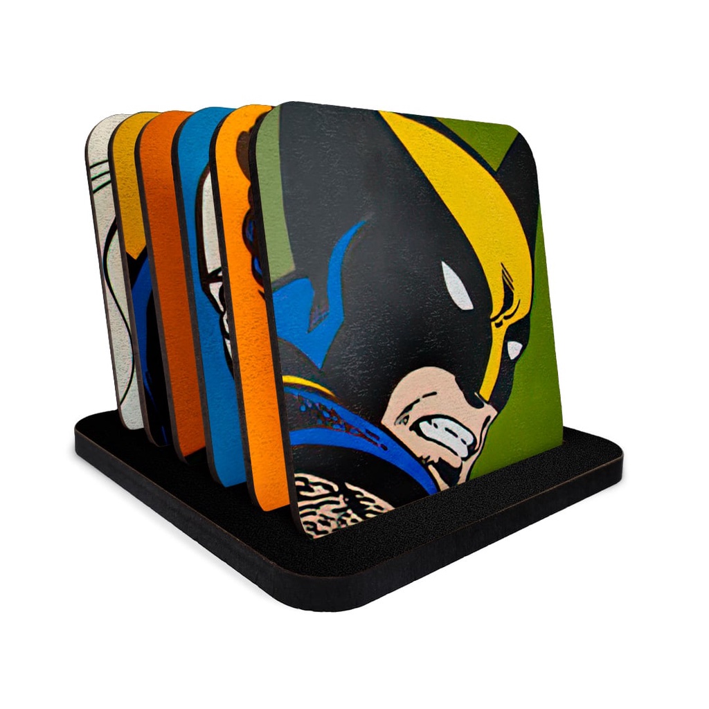 Kit 6 Porta Copos MDF Bolacha X-Men - Wolverine, Tempestade