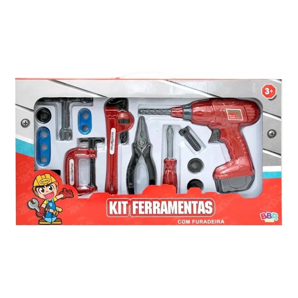 Kit De Ferramentas Brinquedo Infantil Com Furadeira Realista Não Usa Pilhas - Bbr toys