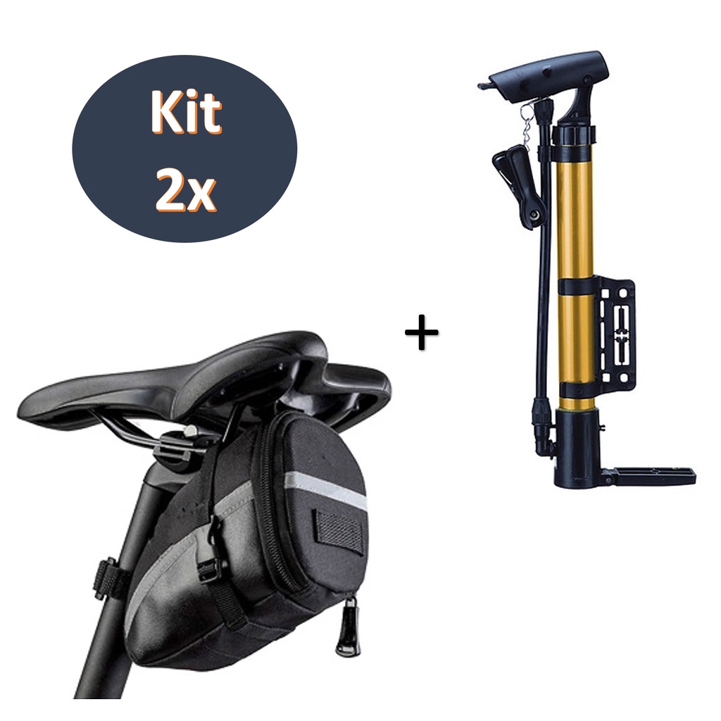 Kit Bomba De Ar Alumínio Com Trava e Bicos Fino/grosso Encher Bola Futebol Futsal Pneu de Bicicleta + Bolsa Selim Para Banco Bike