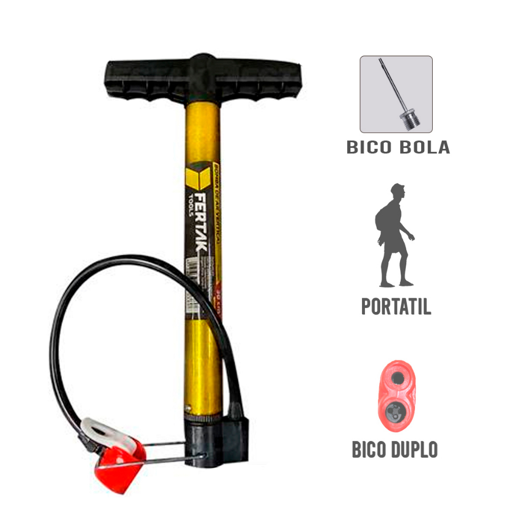 Bomba Encher Bola Bomba de ar 30 cm Bomba Encher Pneu Bike Moto Carro Manual Fertak Com bico de bola