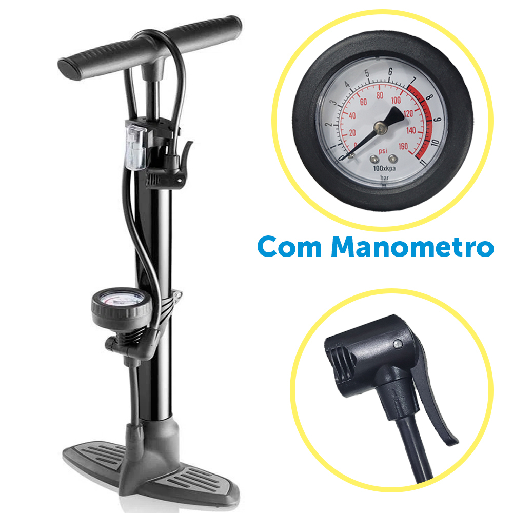 Bomba De Ar Encher Pneu De Bicicleta Bola Bike Carro Moto Facil Com Bico