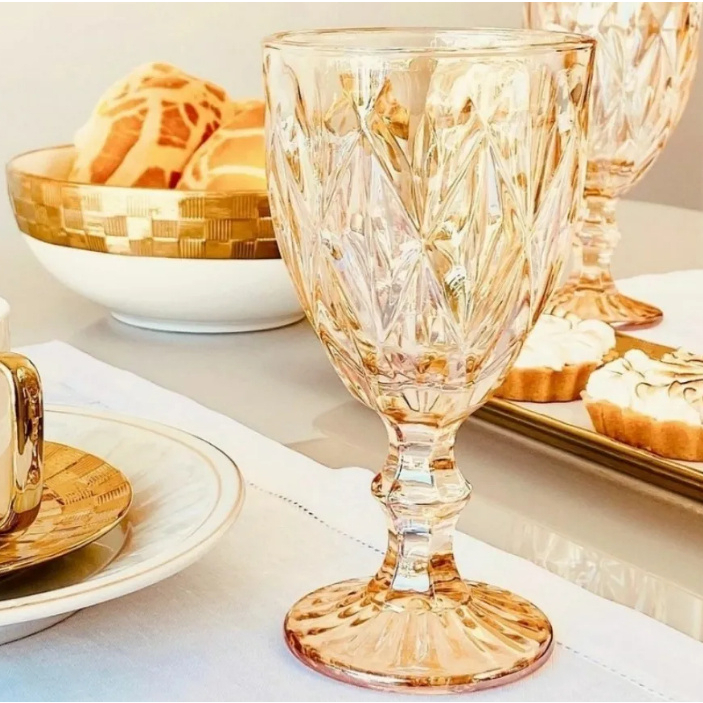 Jogo de Taças 340ml Âmbar Elegância De Vidro em 6 ou 12 Peças + Jarra 1L Exclusiva Diamond - 88064