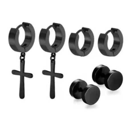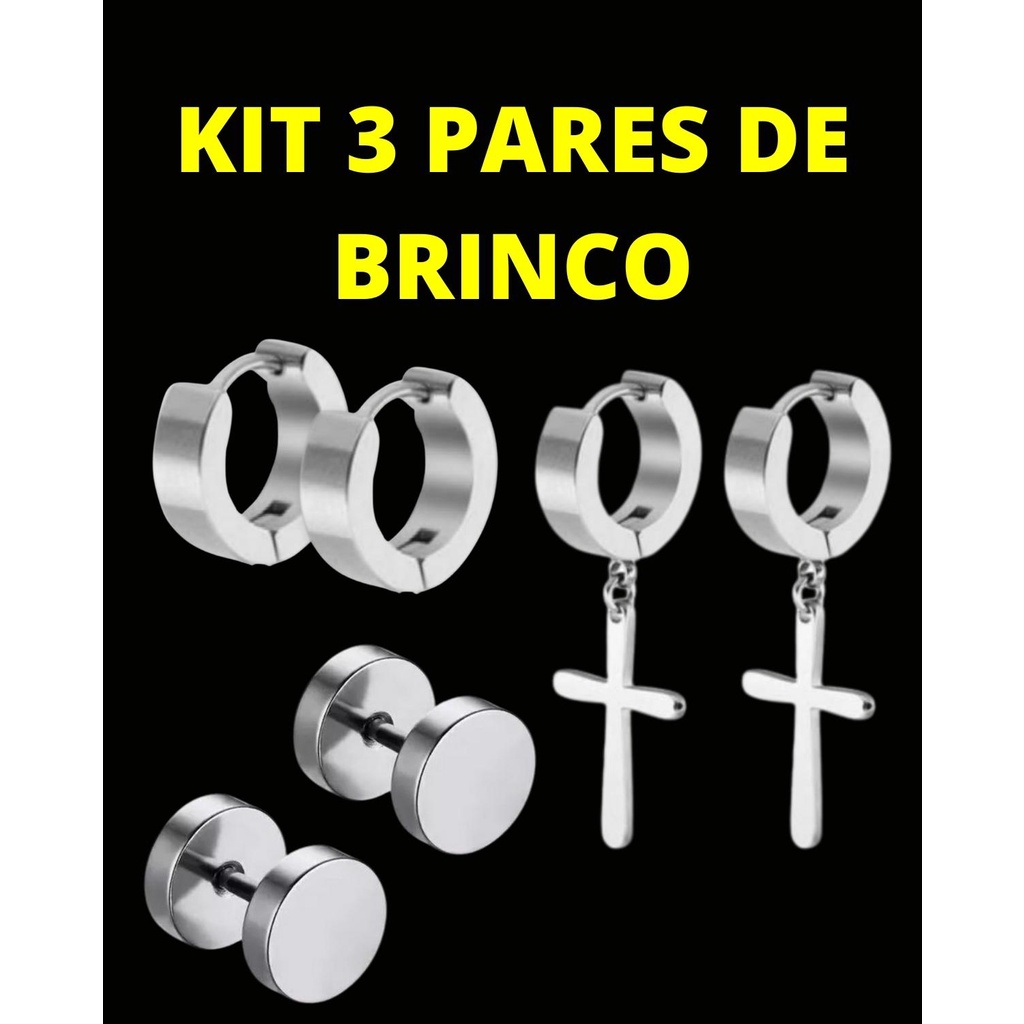 Kit 3 Pares Brinco Brincos Masculino Feminino Argola Em Aço Inox Cruz Crucifixo De Pressão não precisar de Furo