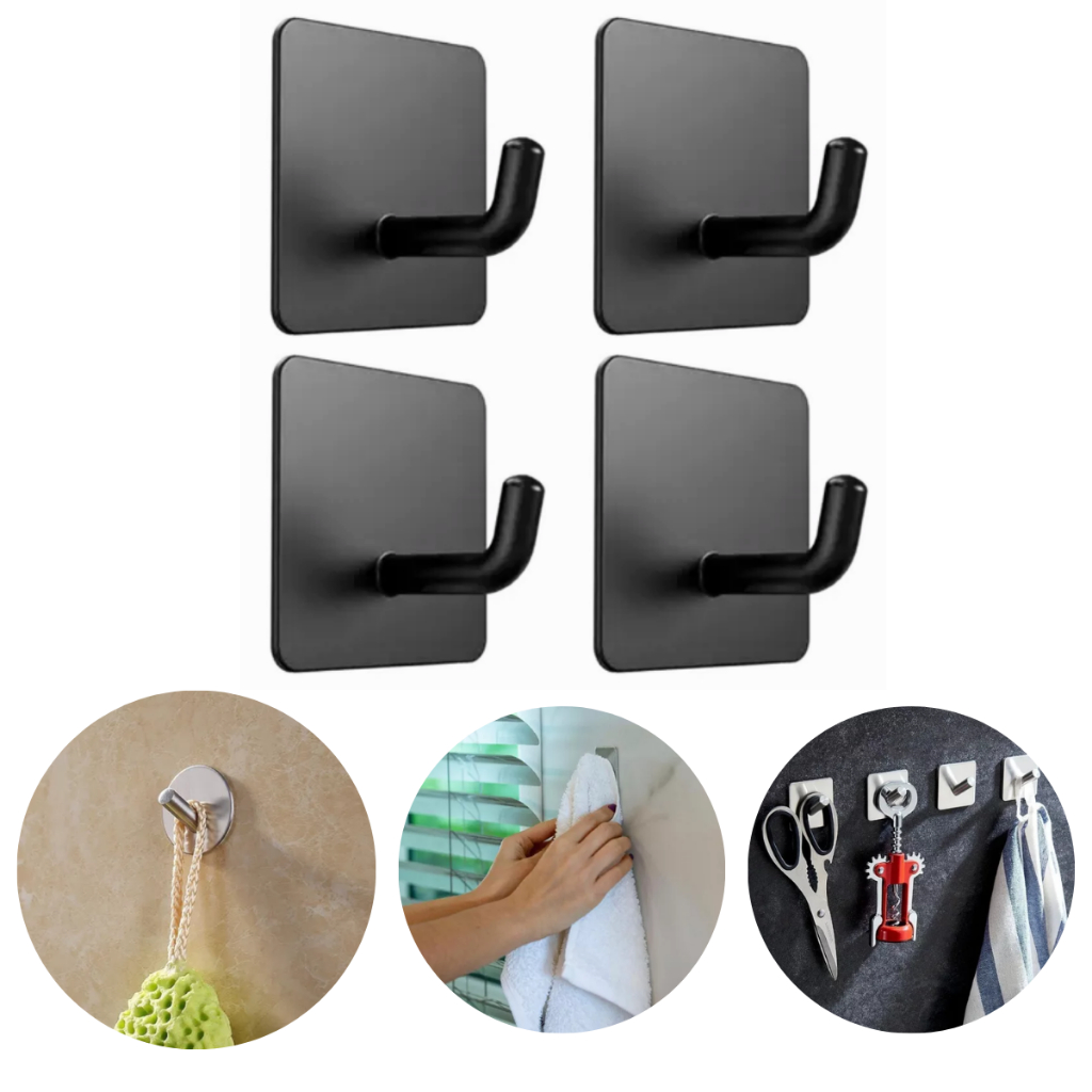 Kit 4 Ganchos Inox Adesivo 3m Cabide De Parede Autocolante