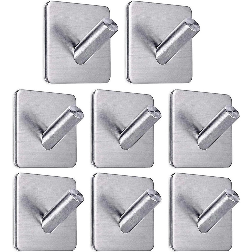 Kit 8 Ganchos Inox Adesivo 3m Cabide De Parede Autocolante