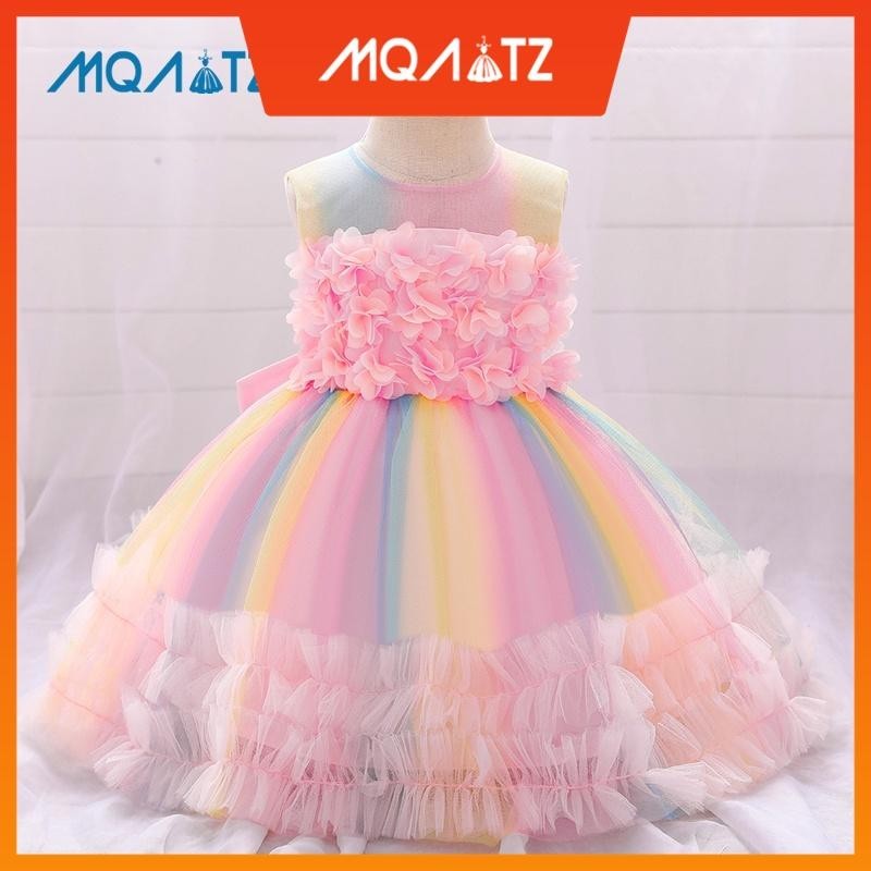 MQATZ Flor Batismo Colorido Vestido De 1 Aniversário Para Menina Bebê Bola Bolo Princesa Festa De Renda Criança 0-5 Anos L2020XZ
