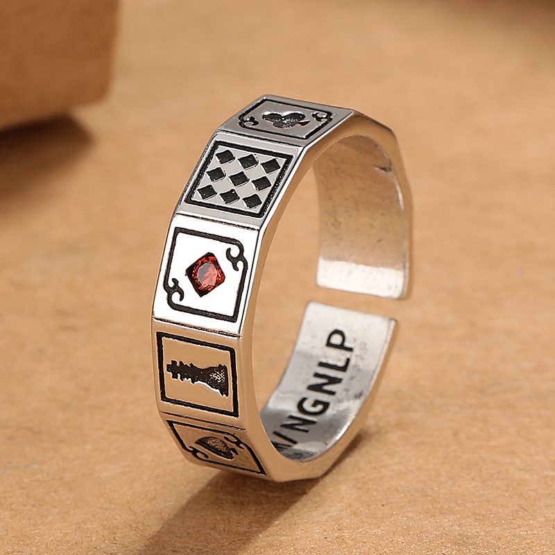 Anel Retro Cool Style Retro Cartas de Jogo Cartas de Estilo Frio Homens Mulheres Anéis de Mão Única Abertura Ajustável Acessórios de Moda