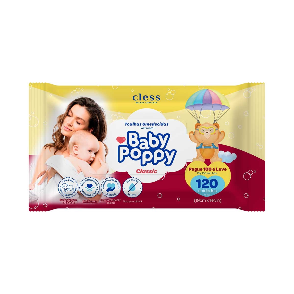 Toalha Umedecida Baby Poppy Classic 120 Unidades