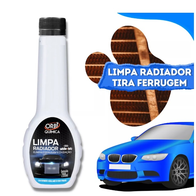 ORBI LIMPA RADIADOR é aditivo que limpa o sistema de arrefecimento, eliminando a ferrugem, resíduos de óleo, lodo e oxidação