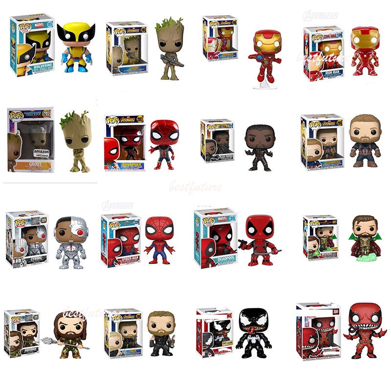 Boneco estilo Funko pop dos vingadores e da liga da justiça mulher maravilha, Aquaman, Batman, Superman, Pantera Negra, Capitão América, Homem-aranha, The Flash, Thor, Hulk, Homem de Ferro, Iron Man e Spider Man